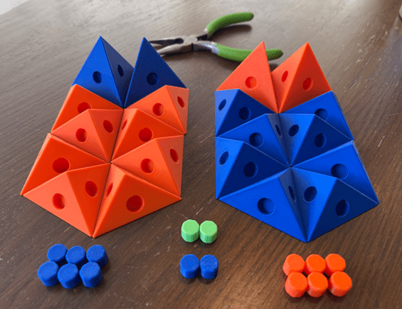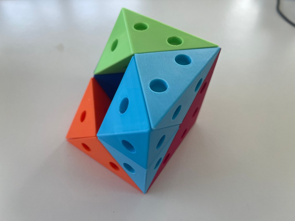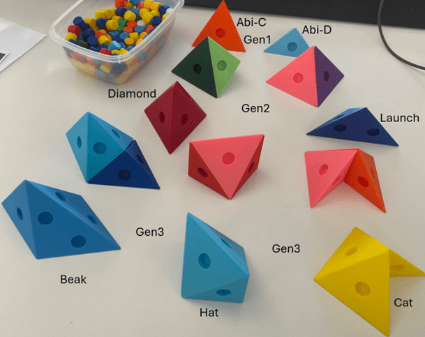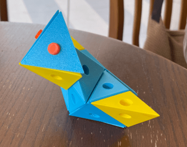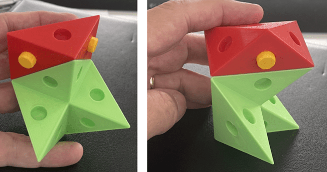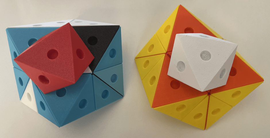 Rule 2: two Abi-D’s may only be connected to each other with one of their three smaller faces. So, they may not be connected to each other with their large face.